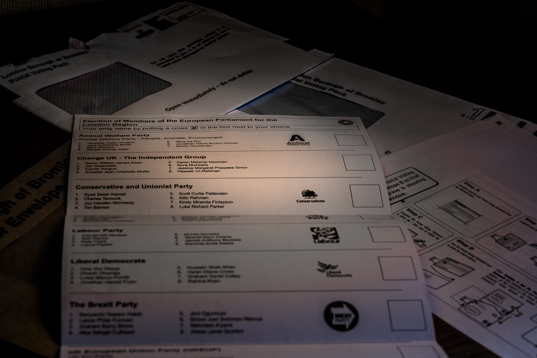 European Parliament Elections postal ballot form – a choice between twenty one parties/independents.