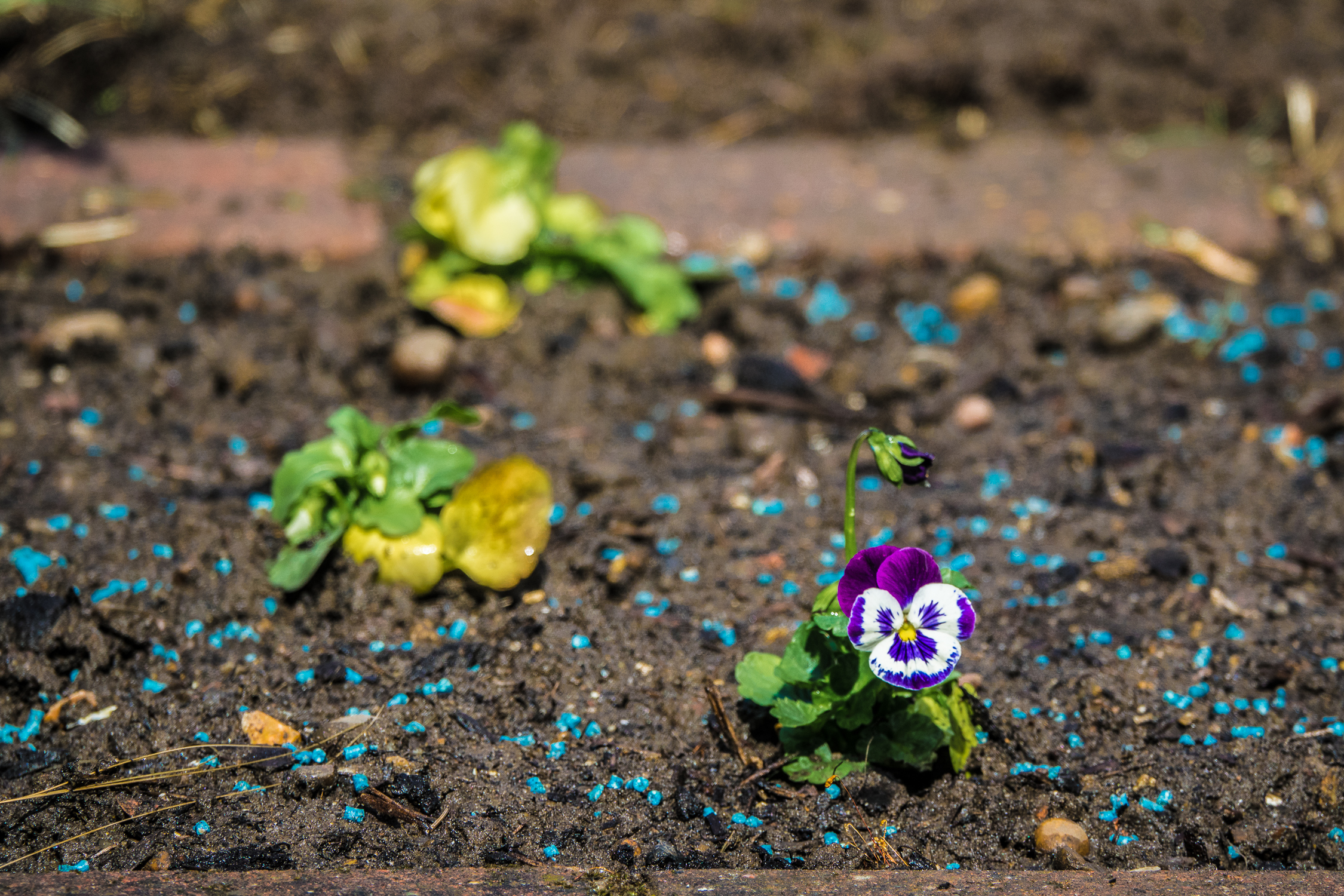 Planting pansies in the back garden